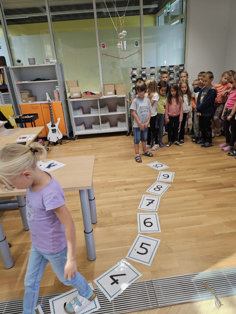 In der 1a geschieht dies über die Reise ins Zahlenland, bei dem über den Zahlenweg alle Zahlen nach der Reihe besucht und spannende Geschichten mit ihnen erlebt werden.