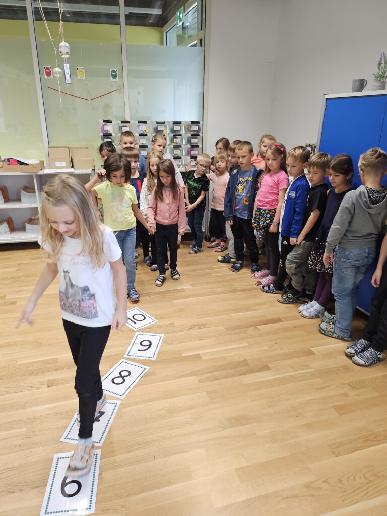 Genauso wie in der Schule die Buchstaben erarbeitet werden, um den Kindern die Grundvoraussetzungen für das Lesen und Schreiben zu schaffen, werden auch die Zahlen spielerisch erarbeitet.