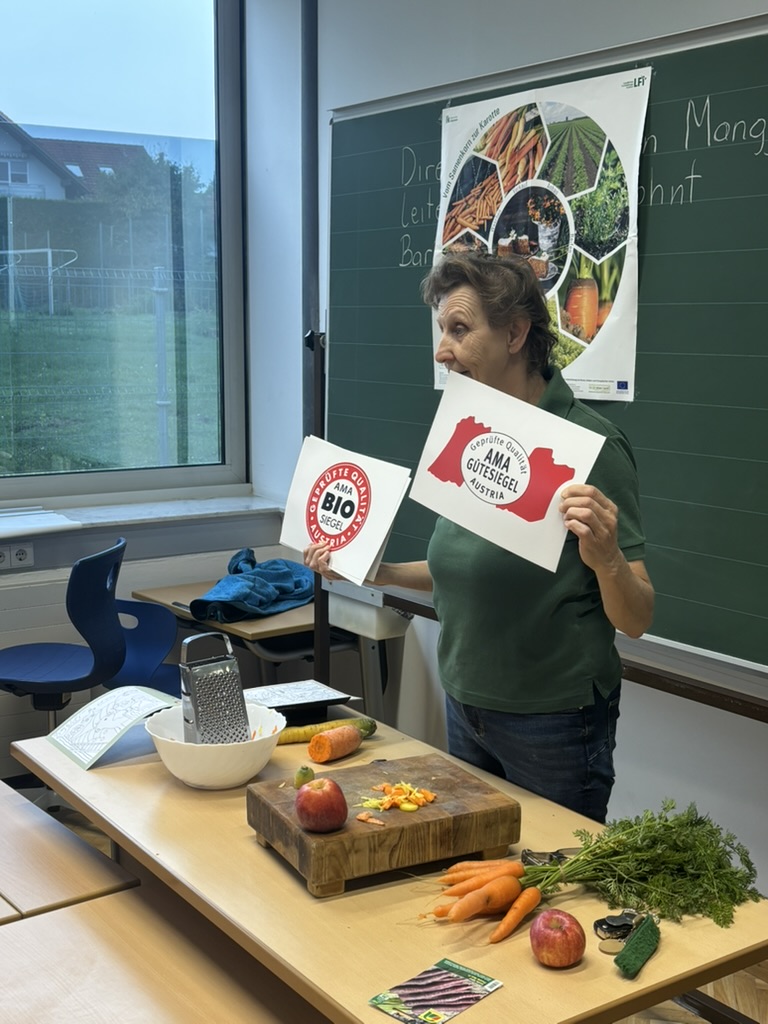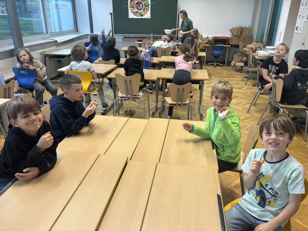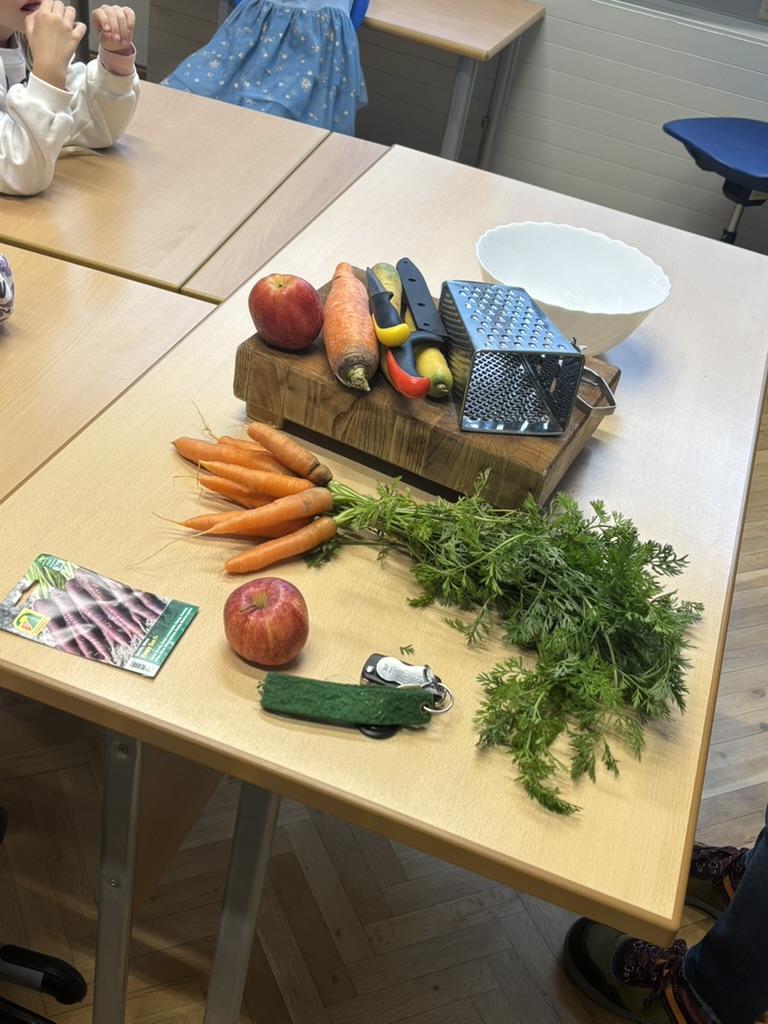 Beim Workshop zum Thema „Karotte“ durften die Schüler*innen der 2a vieles über die Karotte lernen. Wie sie angebaut und geerntet wird, wie die Samen aussehen und das wichtigste: wie sie schmecken kann! Egal, ob Verkostung von Gerieben vs. Geschnitten, Gelb vs. Orange oder Suppe vs. Muffin: jeder konnte sich so richtig durchkosten.