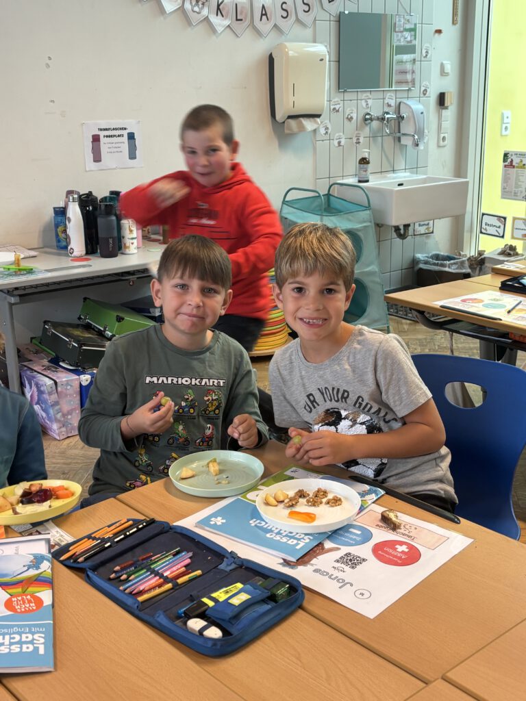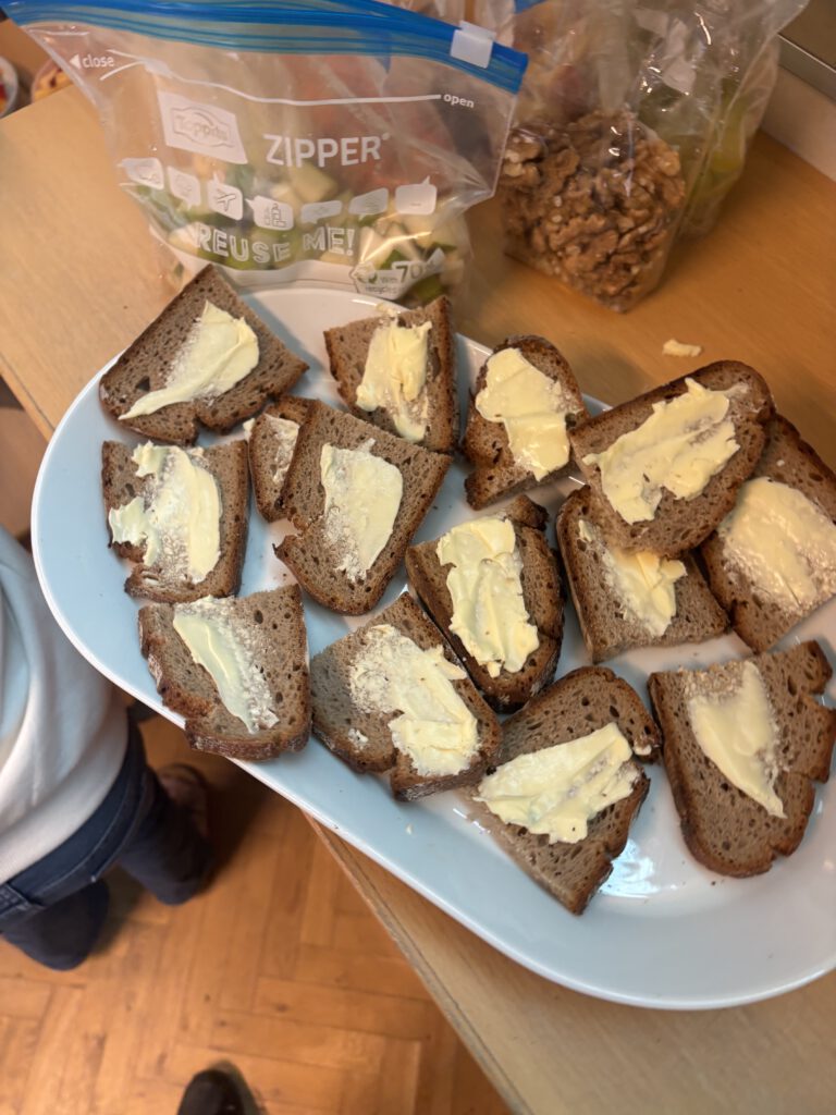 Und weil ein ständiges Sprechen über leckere Sachen uns so hungrig und Gusto nach einer gesunden Jause vom Bauernmarkt macht, gab es als Überraschung eine Stärkung mit Gemüse, Obst, Nüssen, Käse, Wurst und Brot. Für all diese Dinge sollten wir Menschen dankbar sein, dass die Erde uns diese Dinge schenkt. Schließlich schmeckt alles ja sooooo gut! Wie könnten wir nur ohne?