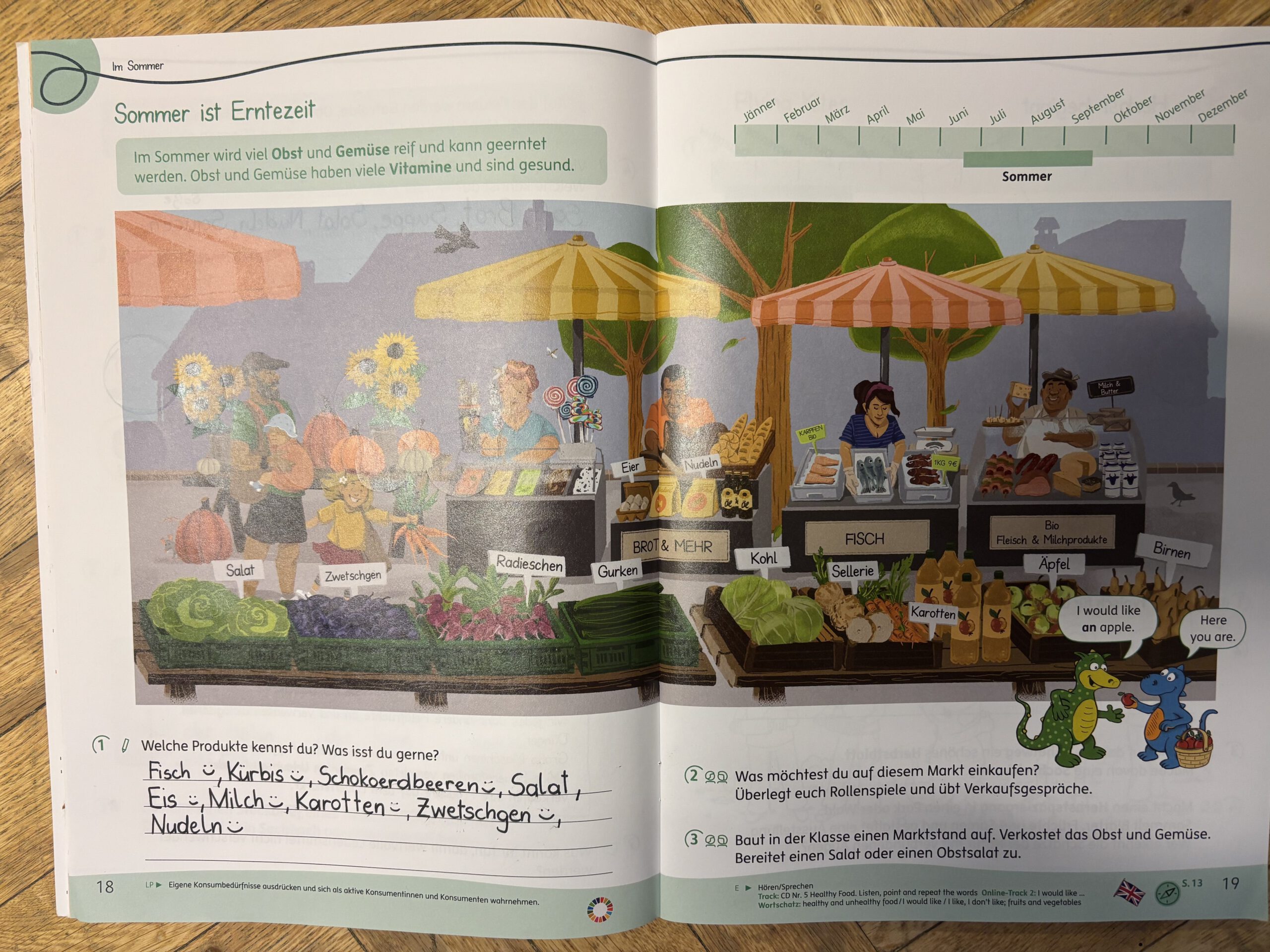 Wir sprachen über den Bauernmarkt im Sachunterricht, was man dort so finden kann und darüber was uns schmeckt und was uns nicht so schmeckt.