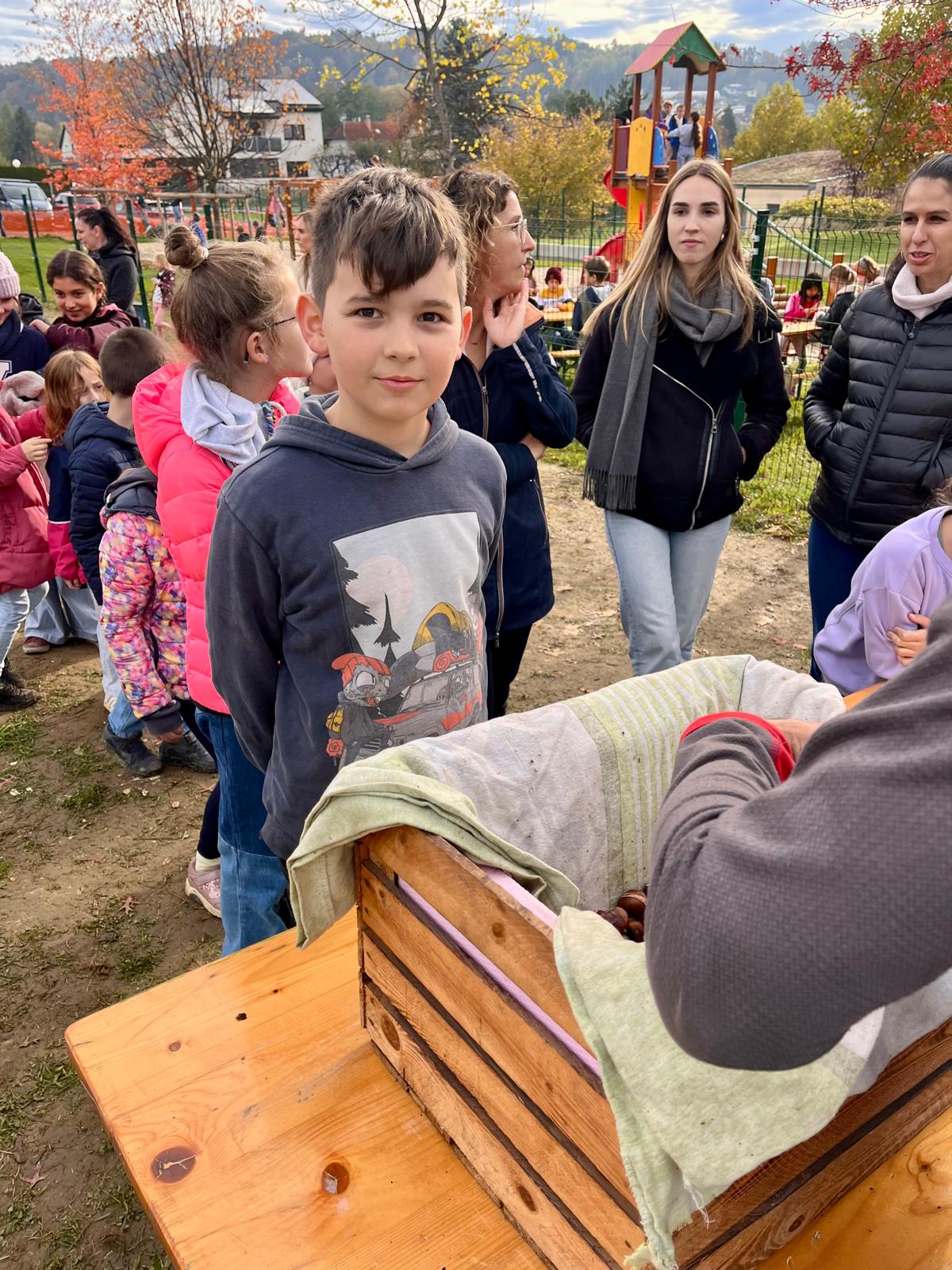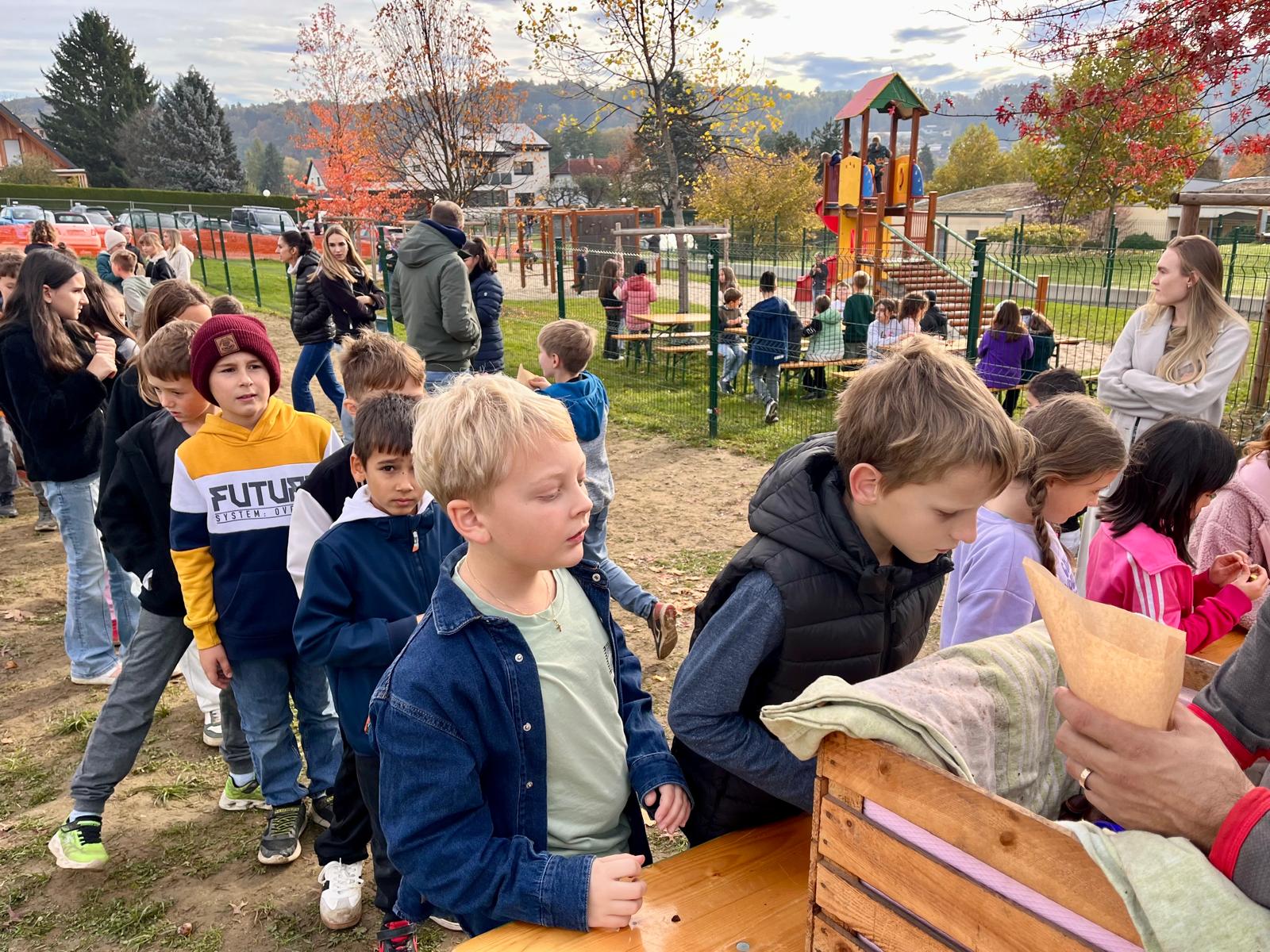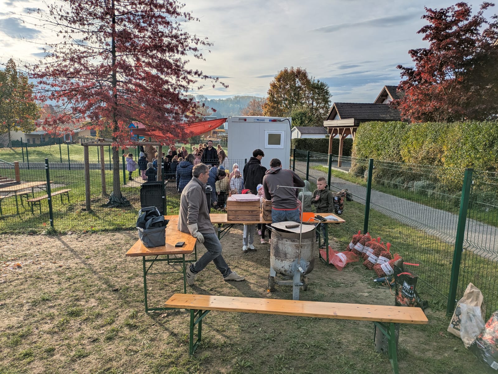 Wir danken unserem Robert Bodenlenz für die Arbeit am Bräter, Christian Dorner und Stefanie Prem für die Unterstützung beim Verteilen der Maroni, den Kindern selbst für die Herstellung der Stanitzel im Werkunterricht und vielen weiteren helfenden Händen!