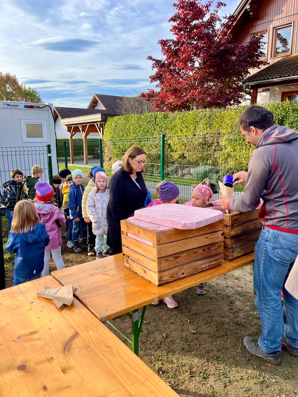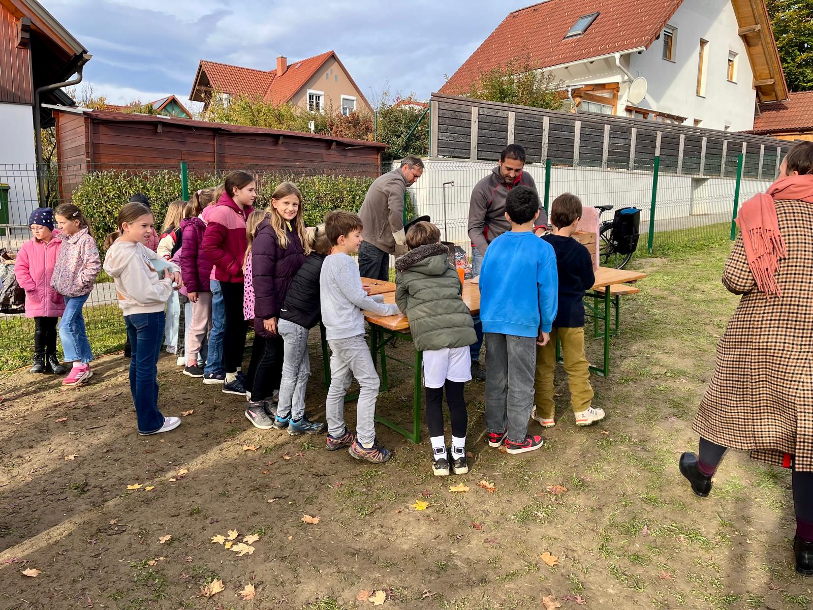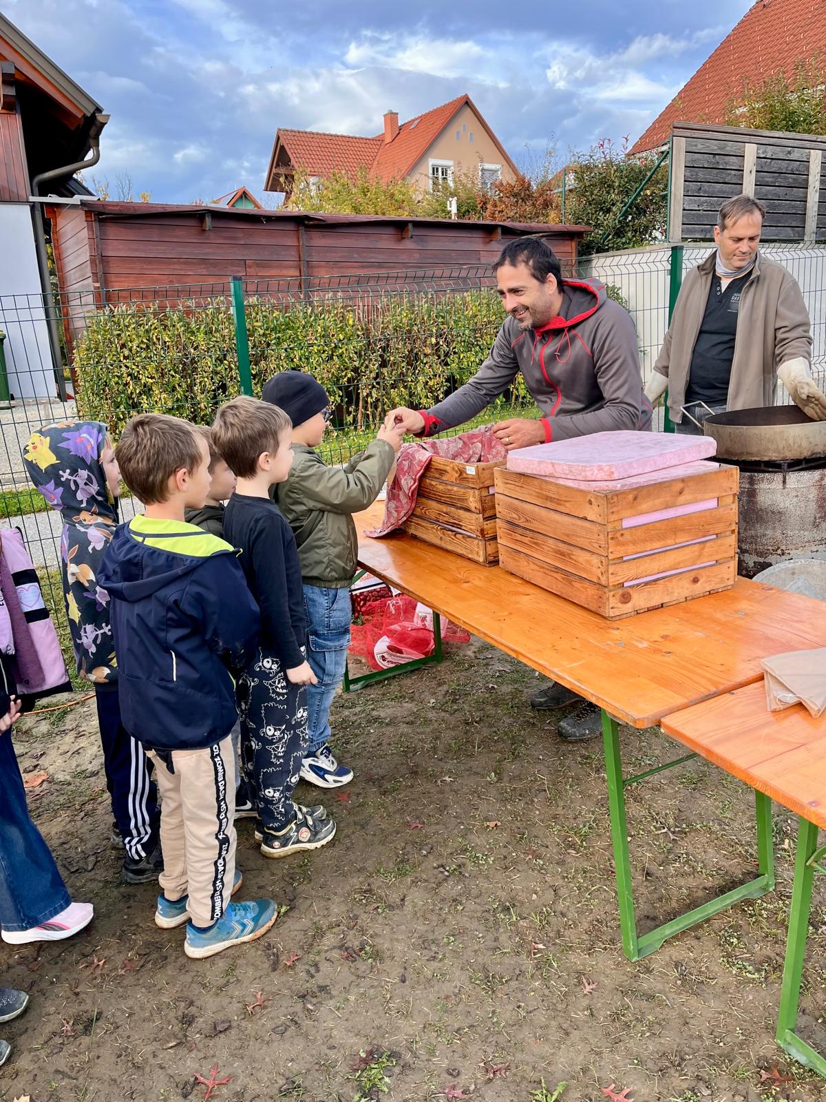 Wir danken unserem Robert Bodenlenz für die Arbeit am Bräter, Christian Dorner und Stefanie Prem für die Unterstützung beim Verteilen der Maroni, den Kindern selbst für die Herstellung der Stanitzel im Werkunterricht und vielen weiteren helfenden Händen!