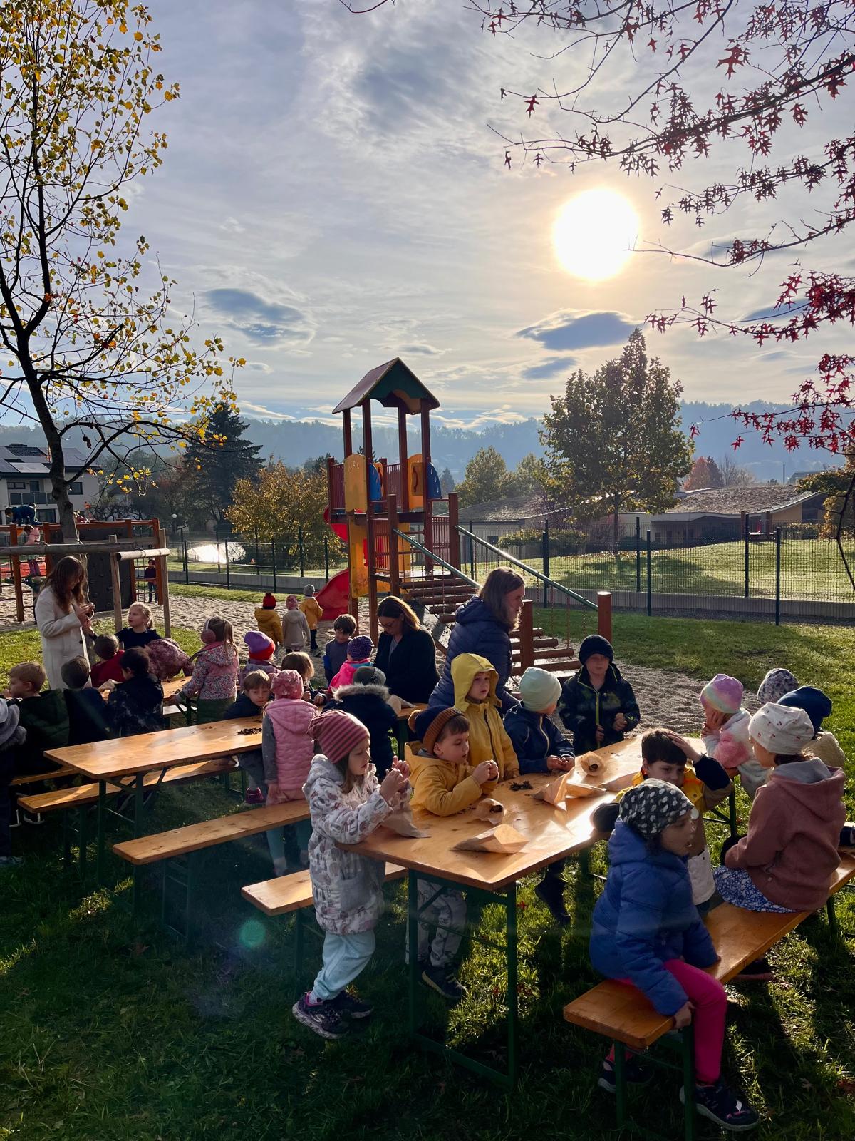 Der Duft von Herbst lag heute in der Luft – knisternd, warm und köstlich. Gestern wurden alle Maroni liebevoll von Hand eingeschnitten, heute durften die Kinder sie frisch gebraten genießen. Ein kleines Stück Herbstglück – alles für die Kinder!