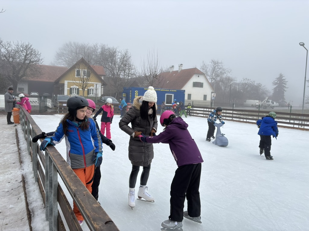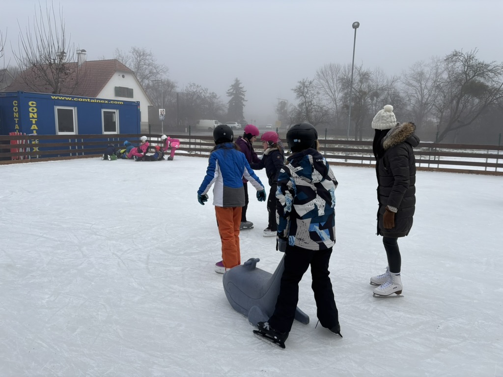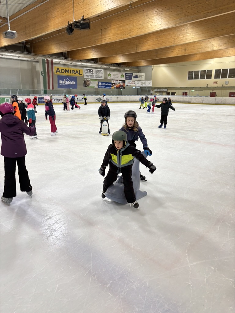 Auch dieses Jahr war die 4a wieder eislaufen. Das Training der letzten Jahre zahlte sich aus – die meisten Kinder flitzten sehr sicher über das Eis. Wer noch unsicher war, nahm sich einen Pinguin oder einen Delfin als Stütze. In den Pausen wurden wir wieder mit Tee und kleinen Snacks versorgt.