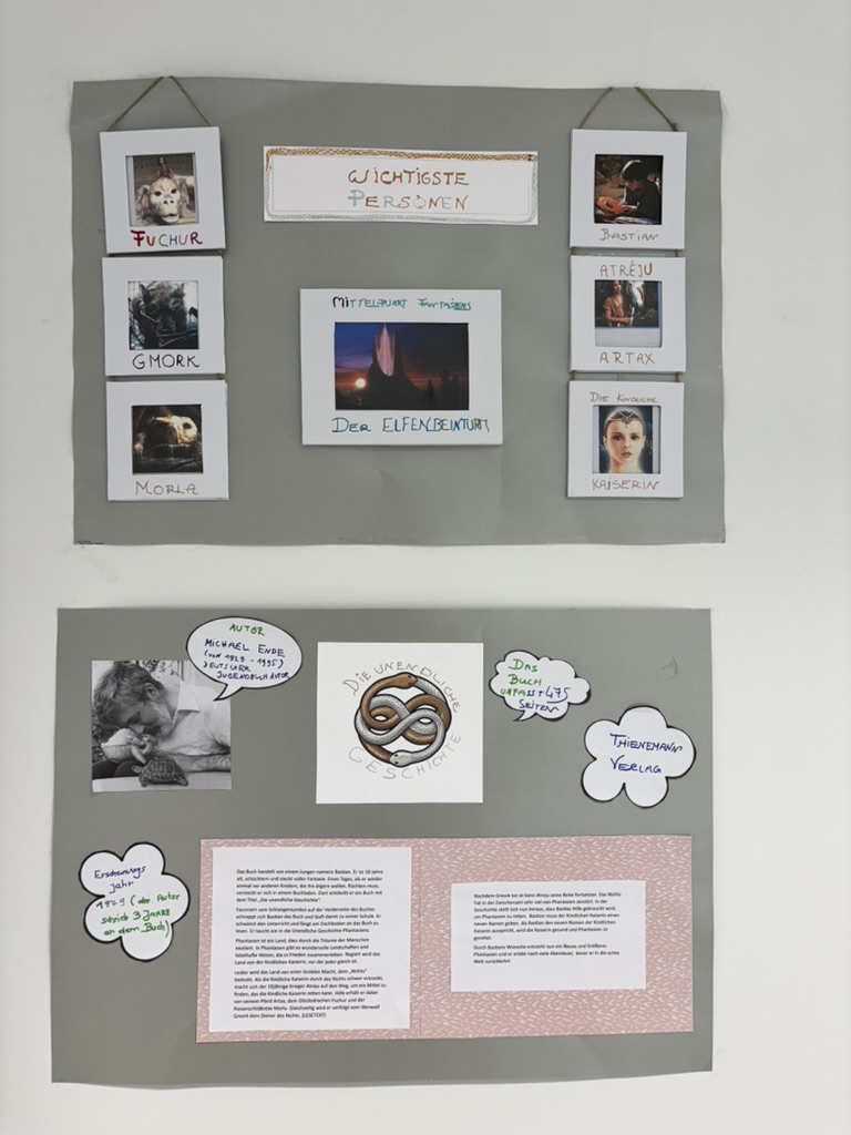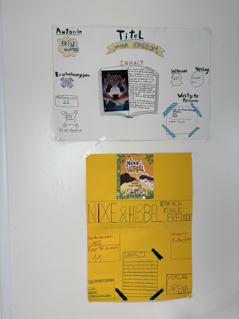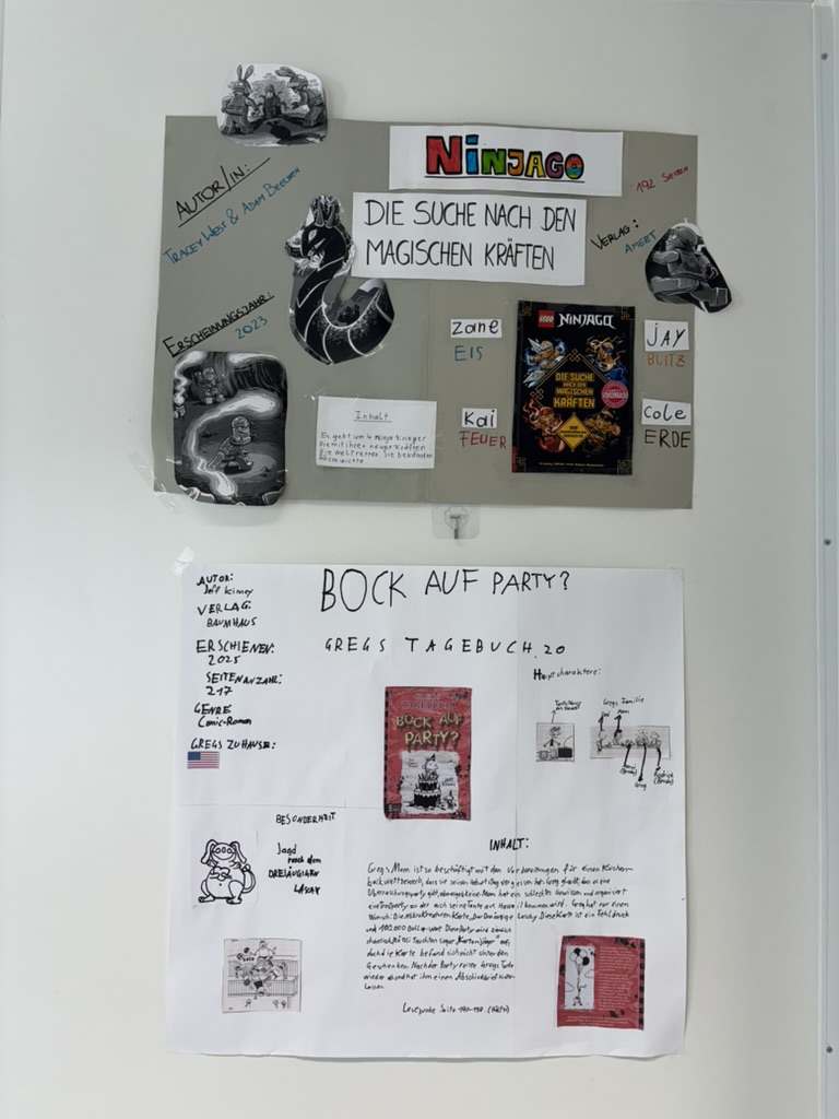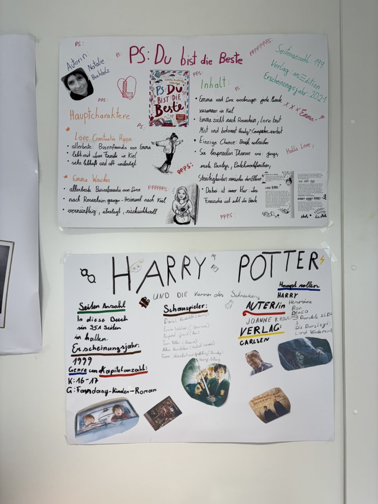 Nach den Semesterferien startete die Klasse dann mit den Buchpräsentationen. Lieblingsbücher unterschiedlichen Genres wurden dabei vorgestellt. Als Vorbereitung wurde ein Bericht dazu ausgefüllt und ein Plakat erstellt. Dieses wurde dann präsentiert und eine Leseprobe vorgetragen.
