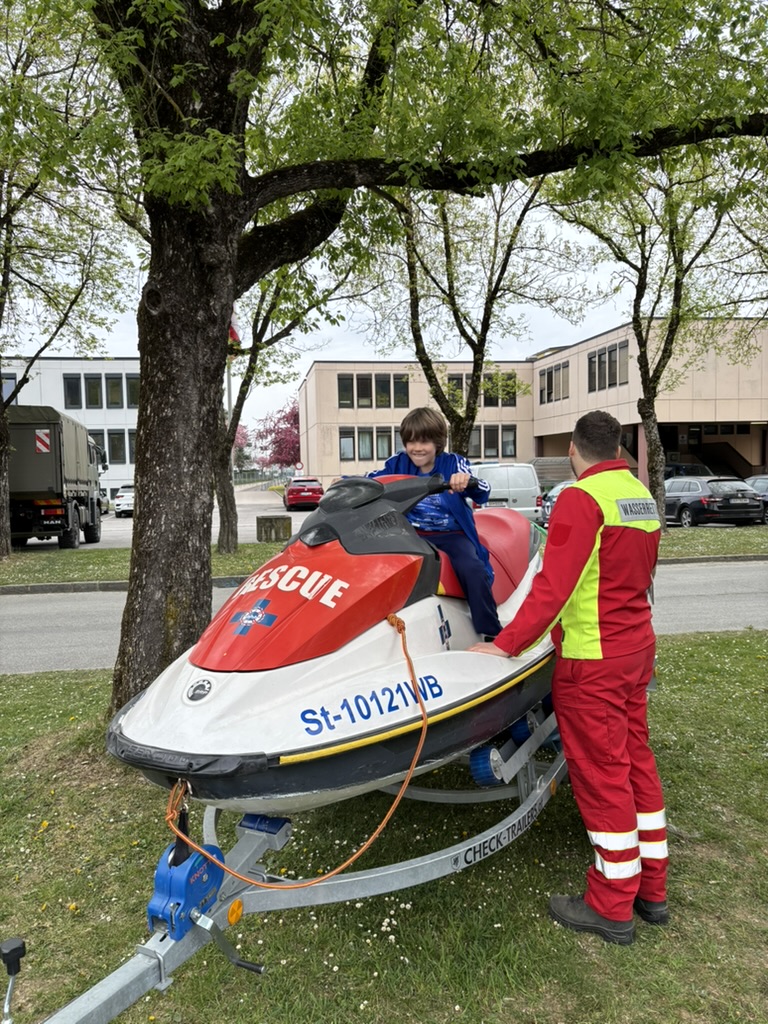 Besonders toll war das Zusatzangebot der Einsatzkräfte. Dabei wurde ein Rettungsauto erkundet, die Polizeiausrüstung anprobiert und der Jetski der Wasserrettung Probe gesessen.