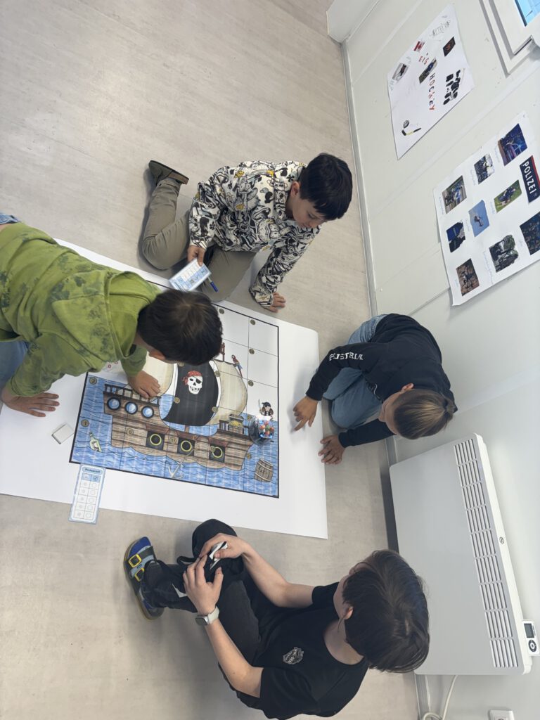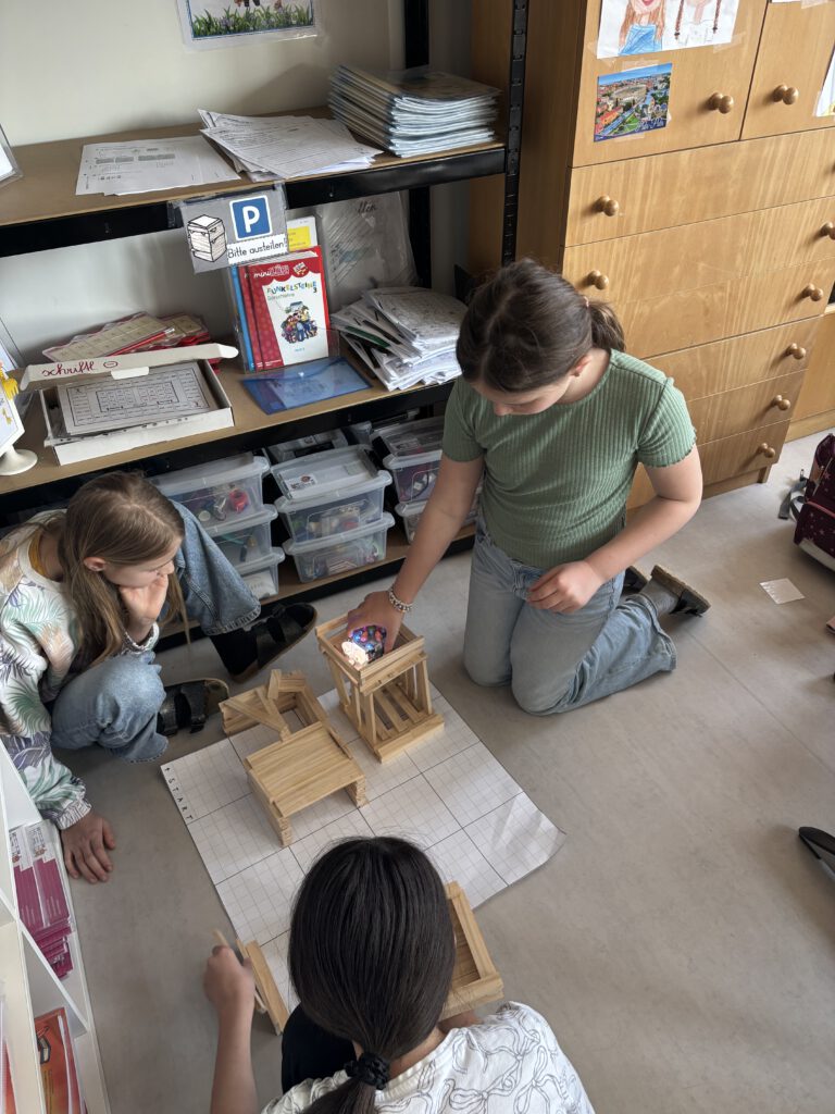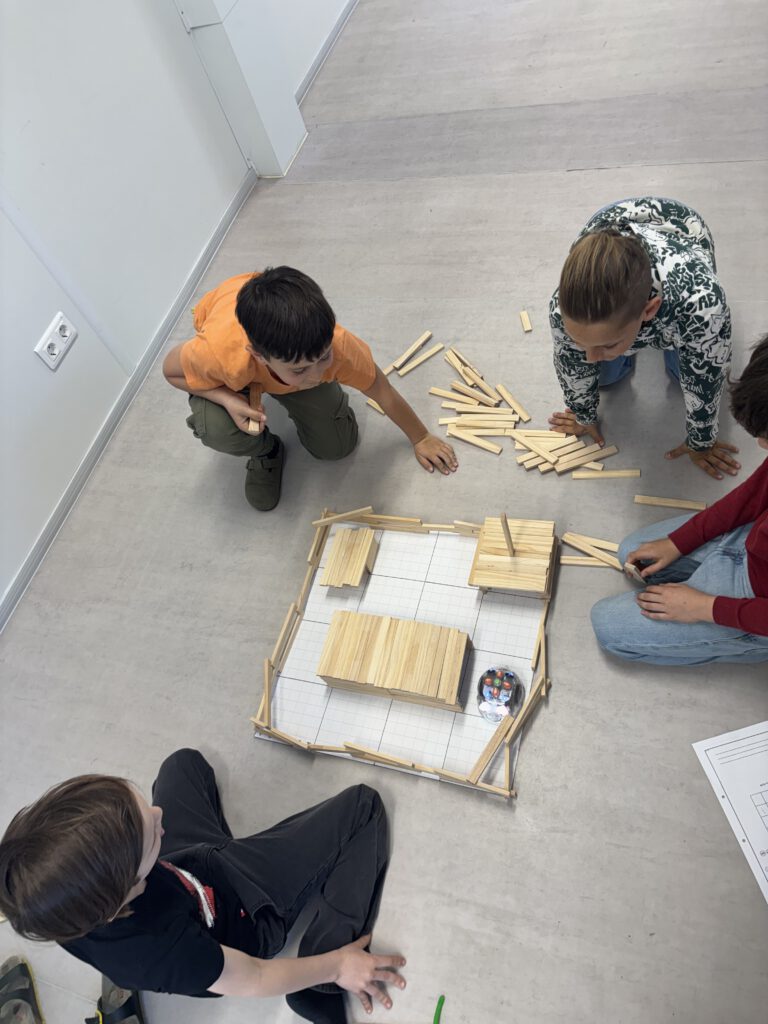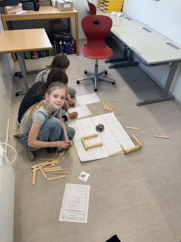 Mit viel Begeisterung gestalteten die Kinder eigene Parcours, ließen die Blue-Bots zu verschiedenen Zielen fahren und überprüften ihre Programme. Fehler wurden dabei nicht als Problem, sondern als wichtiger Teil des Lernens gesehen und gemeinsam verbessert.