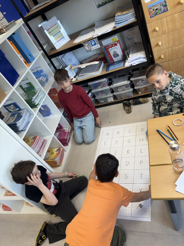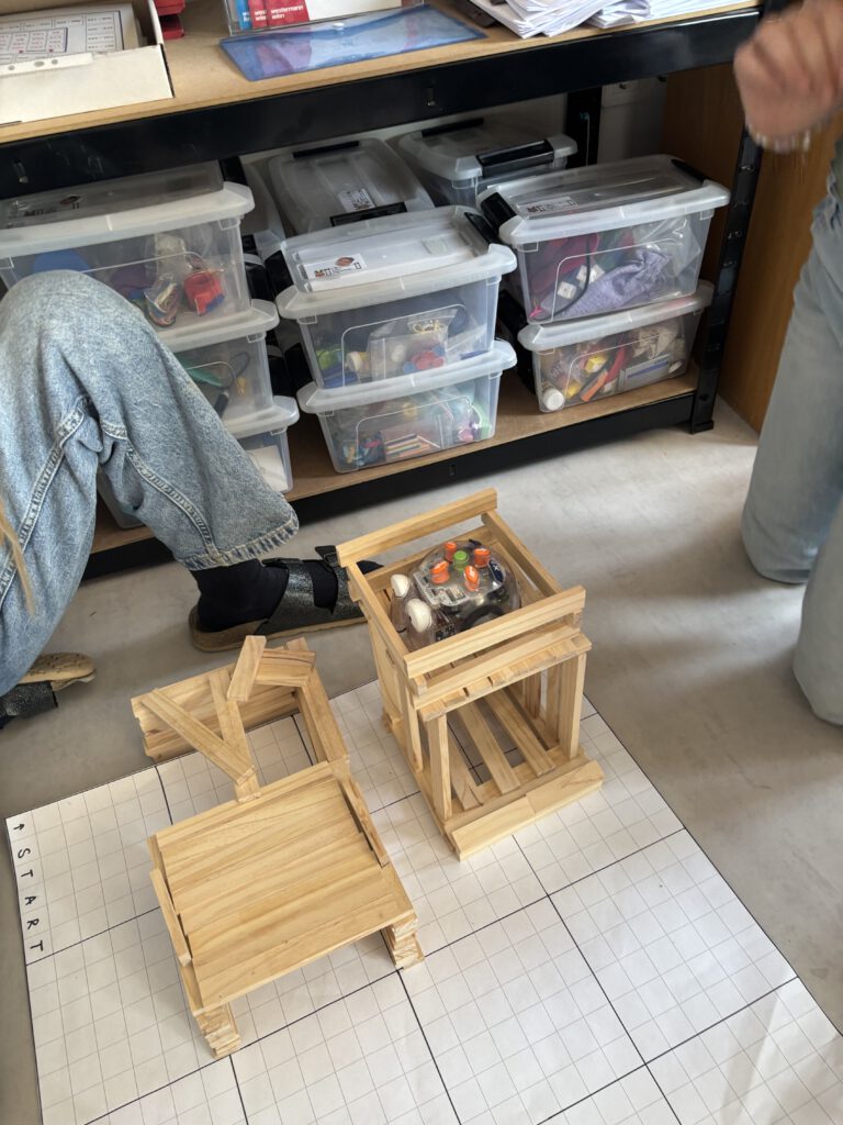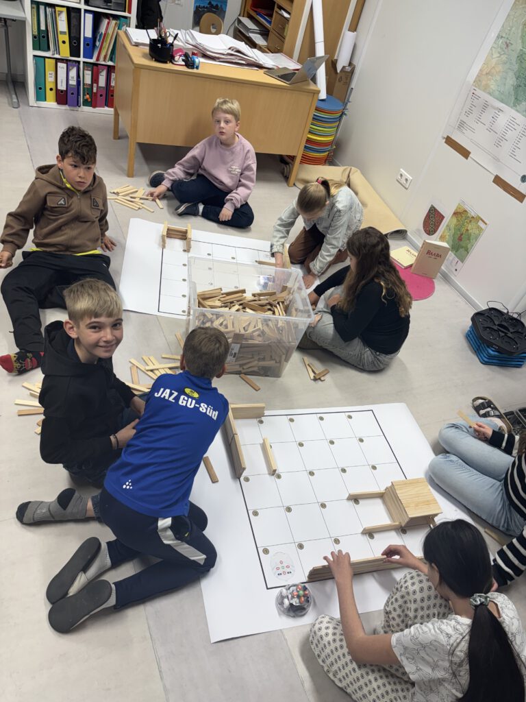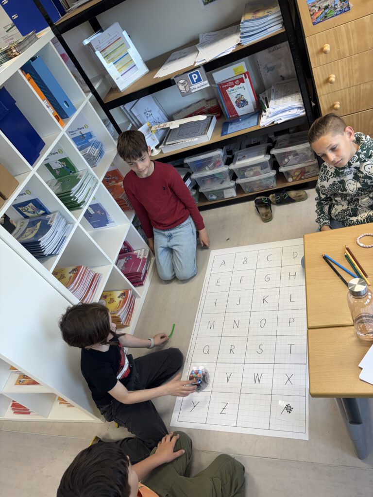 Mit viel Begeisterung gestalteten die Kinder eigene Parcours, ließen die Blue-Bots zu verschiedenen Zielen fahren und überprüften ihre Programme. Fehler wurden dabei nicht als Problem, sondern als wichtiger Teil des Lernens gesehen und gemeinsam verbessert.